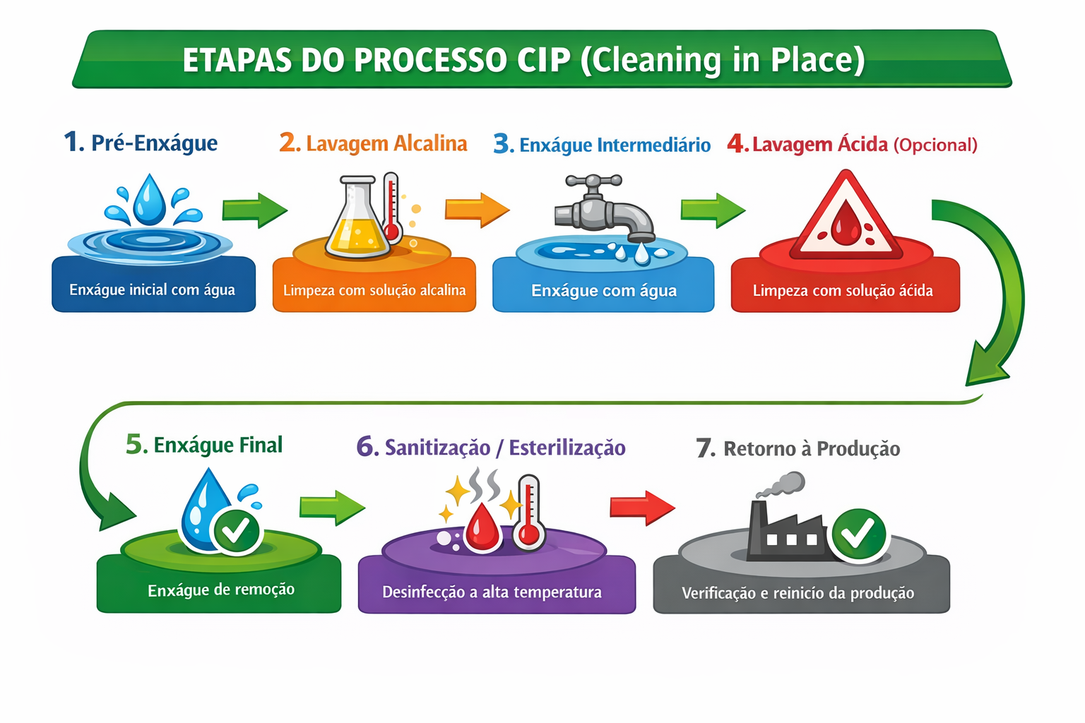 O processo CIP (Cleaning in Place) é um sistema de limpeza automatizado utilizado para higienizar tanques, tubulações e equipamentos industriais sem necessidade de desmontagem.